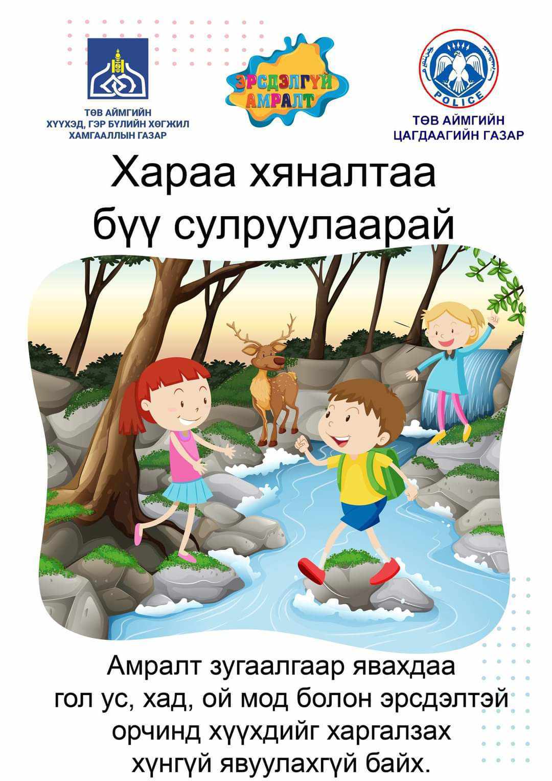 Амралт аялал зугааллагын үе эхэлсэнтэй холбогдуулан бага насны хүүхдийг гол ус болон ой мод эрсдэлтэй газруудад хараа хяналтгүй орхихгүй байхыг анхааруулж байна.