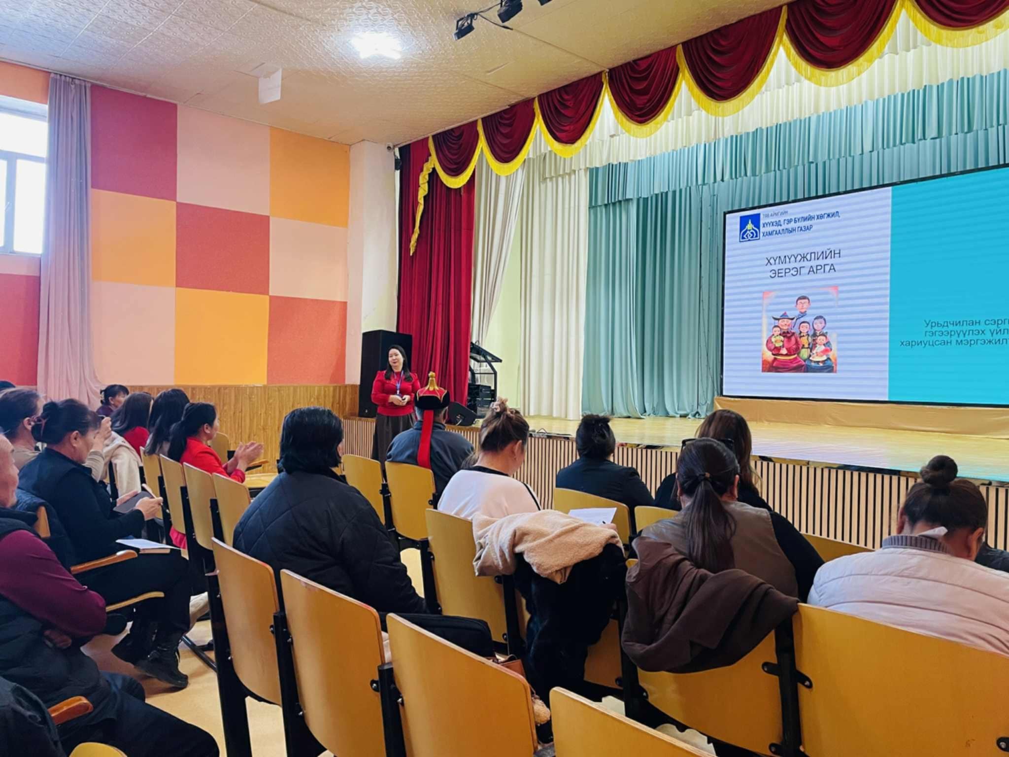 СӨБ-ын байгууллагын 60 орчим эцэг эхчүүдэд “2-5 насны хүүхэдтэй ажиллах арга зүй”, “Найз байя” сэдвүүдээр сургалт зохион байгуулсан.