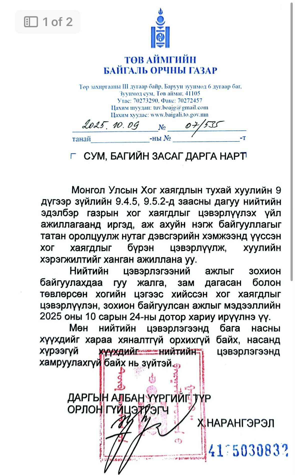 Гүйцэтгэх албан тушаалын сонгон шалгаруулалтын зар